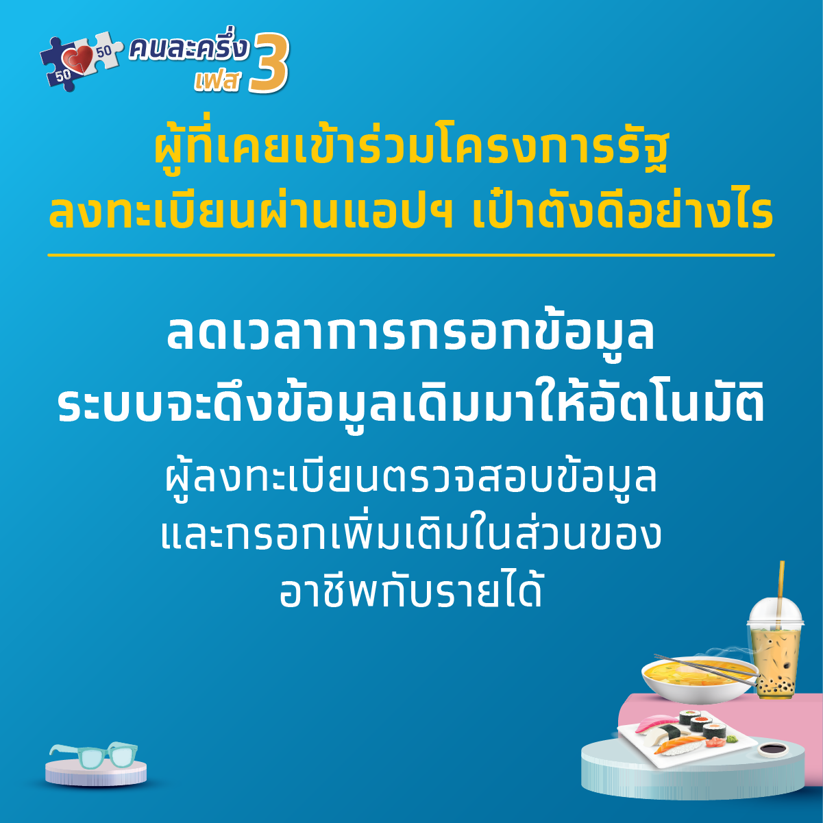 64 โครงการ คนละครงเฟส3 เตรยมเปดให. นอกจากน คนละครง เฟส 3 ยงเปดโอกาสใหการลงทะเบยนรอบน คนทเคยใชแอปเปาตง และใช g-wallet ในโครงการของรฐแลว จะสามารถกดลงทะเบยนจากแอป. คนละครงเฟส 3 คนเกาตองลงทะเบยนใหม พรงน 6 โมงเชา 31 ลานสทธ การตพมพ.
