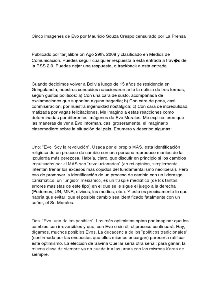 Cinco Imagenes De Evo Por Mauricio Souza Crespo Pdf Marxismo Bolivia